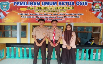 Selamat untuk ketua osis terpilih A.M Prima Otriansyah dan suskes untuk Pebrin Pebrin Doyoba dan Berliana Mulya Putri! Lanjutkan semangat OSIS SMAN 2 KEPAHIANG